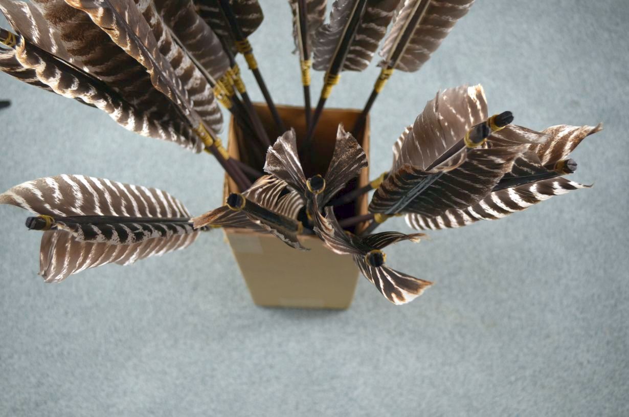 Each fletching is 9 to 10 inches long, using the full feather!